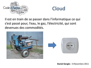 Le document discute des tendances en informatique cloud, en le comparant à des commodités telles que l'eau et l'électricité. Il aborde les caractéristiques du PaaS, comme la flexibilité, les interfaces complexes et les outils pour le développement d'applications. Enfin, il souligne l'importance des choix de développement et des tests précoces lors de l'utilisation de PaaS.