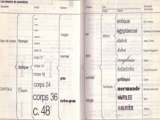 Le document traite des codes typographiques, des principes de mise en page et de l'impact psychologique des éléments typographiques sur le lecteur. Il aborde les différents types de blocs de texte, leur composition, ainsi que les formats et les signes spéciaux utilisés pour structurer l'information. Enfin, il souligne l'importance de la mise en page pour faciliter la communication et l'engagement du lecteur.