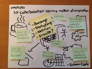 Le document est une vidéo YouTube qui explore des thèmes d'innovation, de collaboration et d'inspiration. Il mentionne Steven Johnson et RSA Animate comme sources d'inspiration. La vidéo vise à stimuler la réflexion sur ces sujets importants.