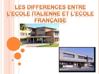Le document compare le système éducatif en Italie et en France, en détaillant la durée des niveaux d'enseignement depuis la maternelle jusqu'au lycée. Il souligne également les différences dans les systèmes de notation, indiquant une échelle de 0-10 en Italie avec une moyenne de 6, contre une échelle de 0-20 en France avec une moyenne de 10. De plus, il mentionne les matières enseignées et leurs horaires respectifs dans chaque pays.