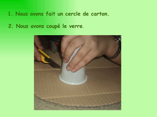 Le document décrit les étapes pour construire un volcan en utilisant des matériaux tels que du carton, du verre et du papier journal. Une pâte à base d'eau et de farine est préparée, et la structure est ornée avant de réaliser une éruption avec du vinaigre et du bicarbonate. Enfin, le processus est accompagné d'une vidéo démonstrative.