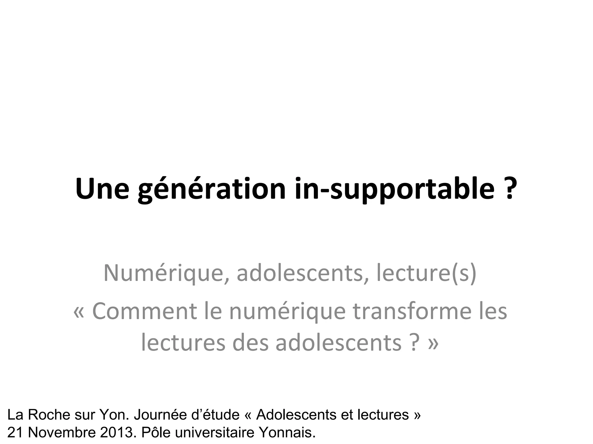 Le document aborde la transformation des pratiques de lecture des adolescents à l'ère numérique, contredisant le mythe du 'digital native' en soulignant que les jeunes d'aujourd'hui lisent autant que ceux des générations précédentes, mais différemment. Il souligne l'impact des dispositifs numériques sur les habitudes de lecture, mentionnant une dépendance accrue à des plateformes qui restreignent la propriété intellectuelle et les interactions sociales. Enfin, il met en garde contre l'aliénation croissante face à la nécessité d'une connexion constante et à la disparition des supports traditionnels de lecture.