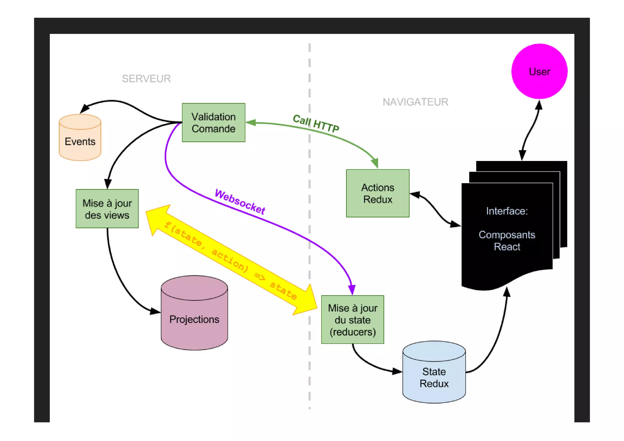 Franck Ernewein, CTO at Tweetping and React/Redux trainer, and Jérôme Avoustin, a developer passionate about extreme programming, discuss implementing Redux on a server. They explore concepts such as DDD, CQRS, event sourcing, and the advantages of using React and Redux for immutable data management and scaling applications. Key topics include separating models, command-query responsibility segregation, and the benefits of maintaining historical event data.