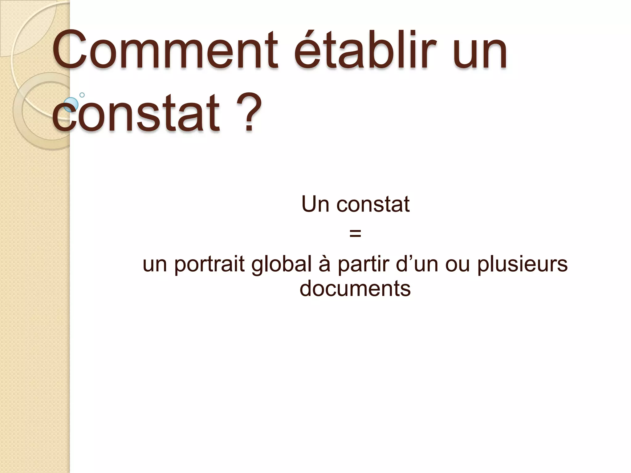 Le document explique comment établir un constat en prenant en compte l'élément temporel, la continuité ou le changement, ainsi que le contexte des valeurs et motivations des acteurs. Il illustre que la population québécoise est majoritairement francophone, malgré une forte diversification ethnique due aux politiques d'immigration. Des questions sont posées pour explorer l'impact historique et la dynamique culturelle sur l'identité québécoise actuelle.