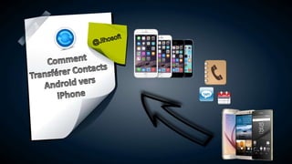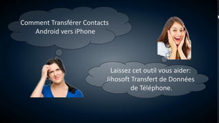 Le document explique comment transférer des contacts d'un appareil Android vers un iPhone. Il recommande d'utiliser l'outil Jihosoft pour faciliter ce processus. Le transfert de données est présenté comme une solution simple et efficace.