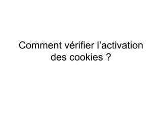 Pour vérifier l'activation des cookies, accédez au menu 'outils', sélectionnez 'options internet', puis l'onglet 'confidentialité'. Abaissez le curseur au niveau le plus bas, appliquez les modifications et cliquez sur OK. La configuration est alors terminée et vos cookies sont activés.