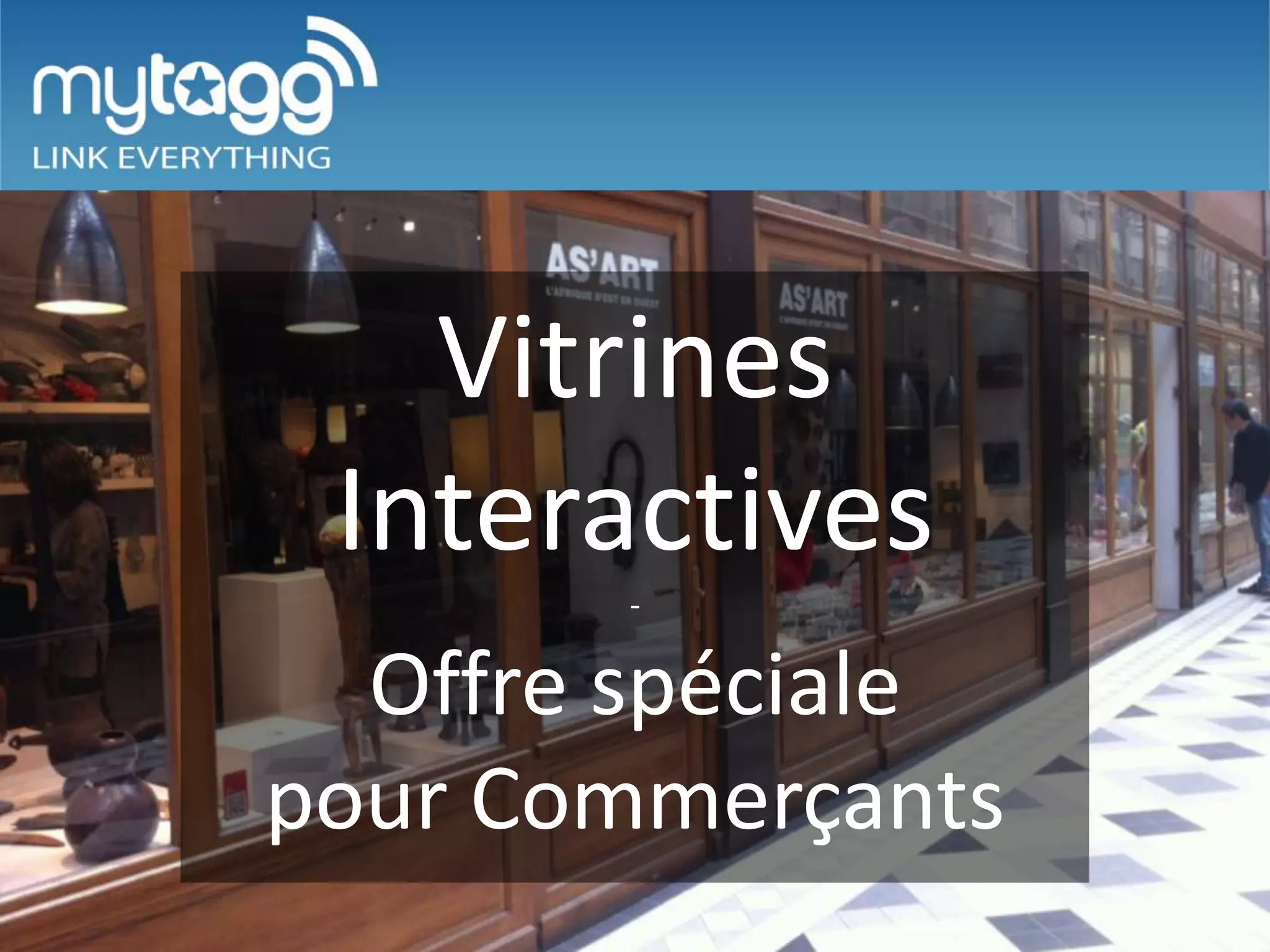 Mytagg propose des vitrines interactives pour commerçants, permettant de transmettre des informations commerciales via QR codes et solutions mobiles, favorisant le marketing viral. Le pack comprend un QR code personnalisé, un mini-site mobile, des stickers en vitrophanie, et un accès à un site de gestion, le tout pour 400 € HT. Environ 3 millions de Français utilisent des QR codes chaque mois, et plus de 70 enseignes ont déjà adopté cette solution.