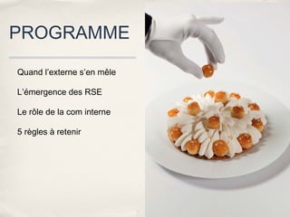 Le document traite de la communication interne à l'ère numérique, mettant en avant l'importance des réseaux sociaux d'entreprise pour favoriser l'interaction entre collaborateurs. Il souligne la nécessité d'adapter la communication aux besoins des employés en capitalisant sur la pertinence et l'engagement communautaire. Enfin, il présente un modèle de gouvernance de l'information qui bénéficie de la dynamique des médias sociaux pour enrichir le partage de connaissances au sein des entreprises.