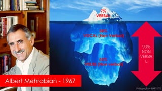 La communication non verbale représente 93% de l'impact communicatif, selon Albert Mehrabian, avec 55% d'éléments visuels, 38% para-verbaux, et seulement 7% verbaux. Philippe Jean-Baptiste souligne que le langage non verbal, comme les gestes et les expressions faciales, est crucial pour la transmission de messages et peut influencer la compréhension et l'interprétation des discours. En raison de sa puissance, la communication non verbale doit être soigneusement observée et maîtrisée dans les échanges interpersonnels.