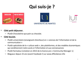 Le document traite des défis de la communication sur les réseaux sociaux pour les entreprises en 2018, en soulignant l'importance de comprendre les spécificités de chaque plateforme et de savoir cibler son audience. Il évoque également la nécessité pour les community managers d'avoir des compétences variées, allant du marketing à la psychologie, pour naviguer dans un paysage numérique en constante évolution. Enfin, il met en lumière l'importance de la visibilité, qu'elle soit organique ou payante, et les implications des algorithmes sur la communication en ligne.