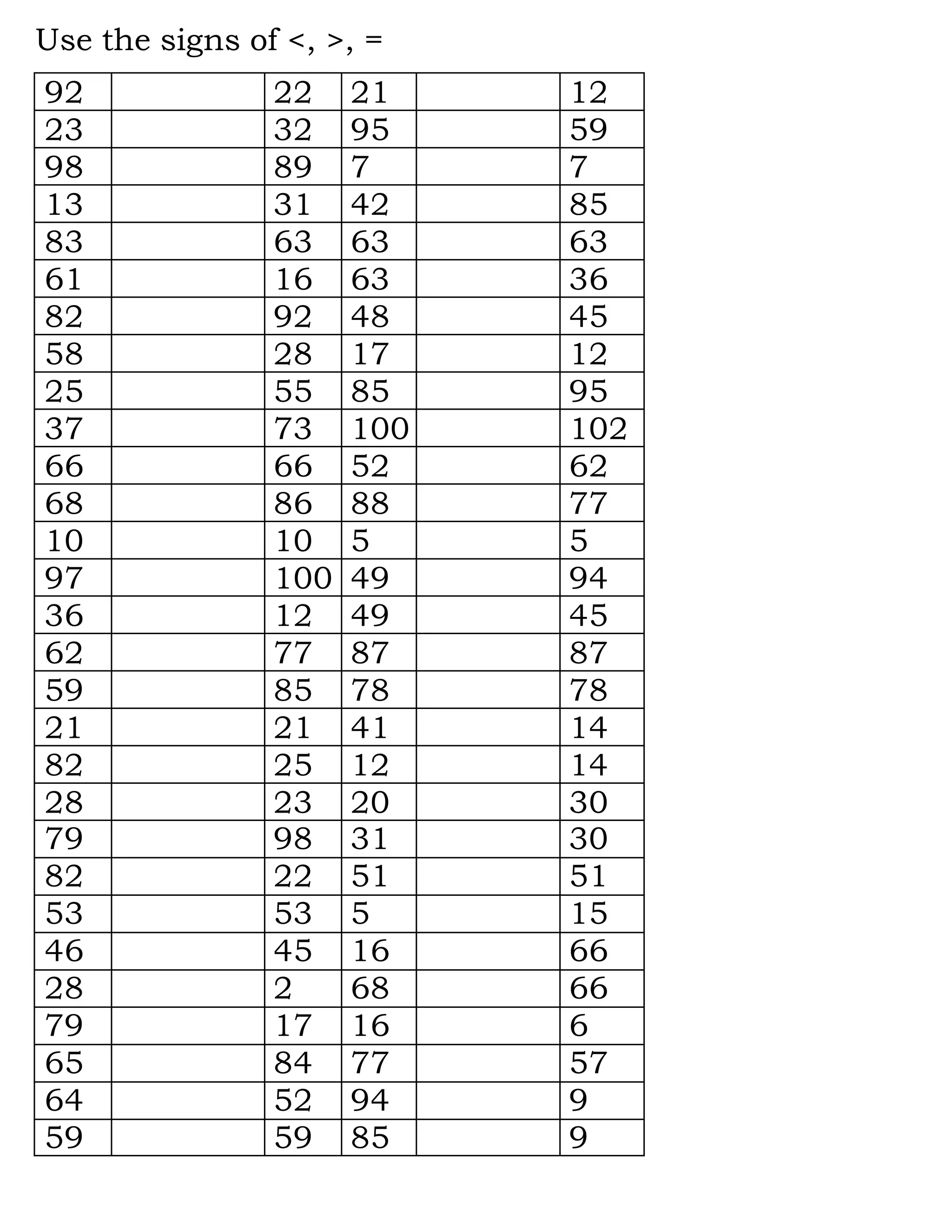 Le document présente une série de nombres et utilise les signes de comparaison (<, >, =). Il ne fournit pas de contexte ou d'explications supplémentaires concernant les valeurs. L'analyse ou l'interprétation des données n'est pas incluse.