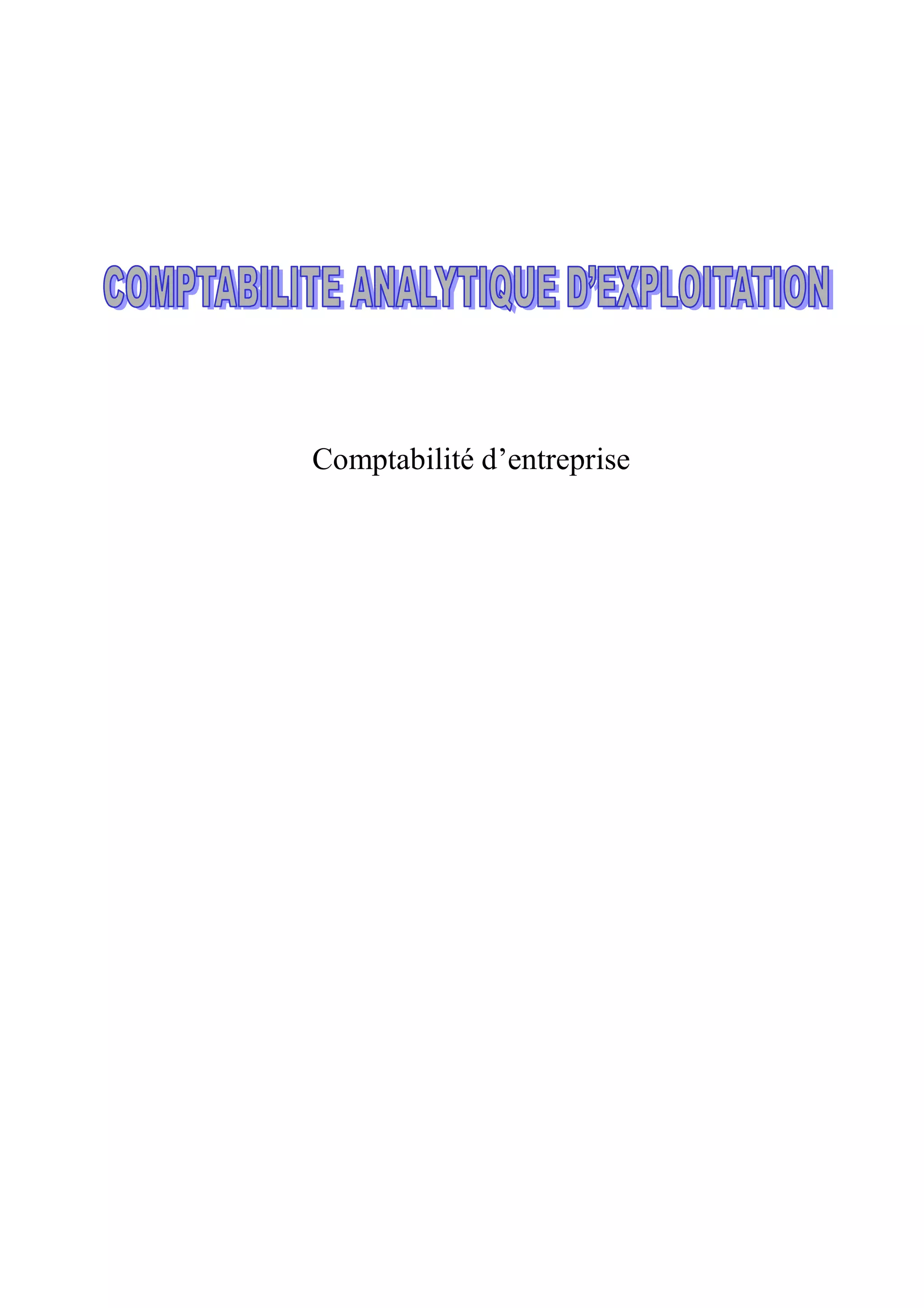 Le document traite de la comptabilité d'entreprise, en se concentrant spécifiquement sur les méthodes de coûts complets et partiels. Il explique les insuffisances de la comptabilité générale et les objectifs de la comptabilité analytique, en fournissant des détails sur les coûts, leur hiérarchie, et la gestion des stocks. Les sections couvrent la définition des coûts, la comparaison entre comptabilité générale et analytique, ainsi que des méthodes d'évaluation des stocks et leur impact sur le calcul des coûts de revient.