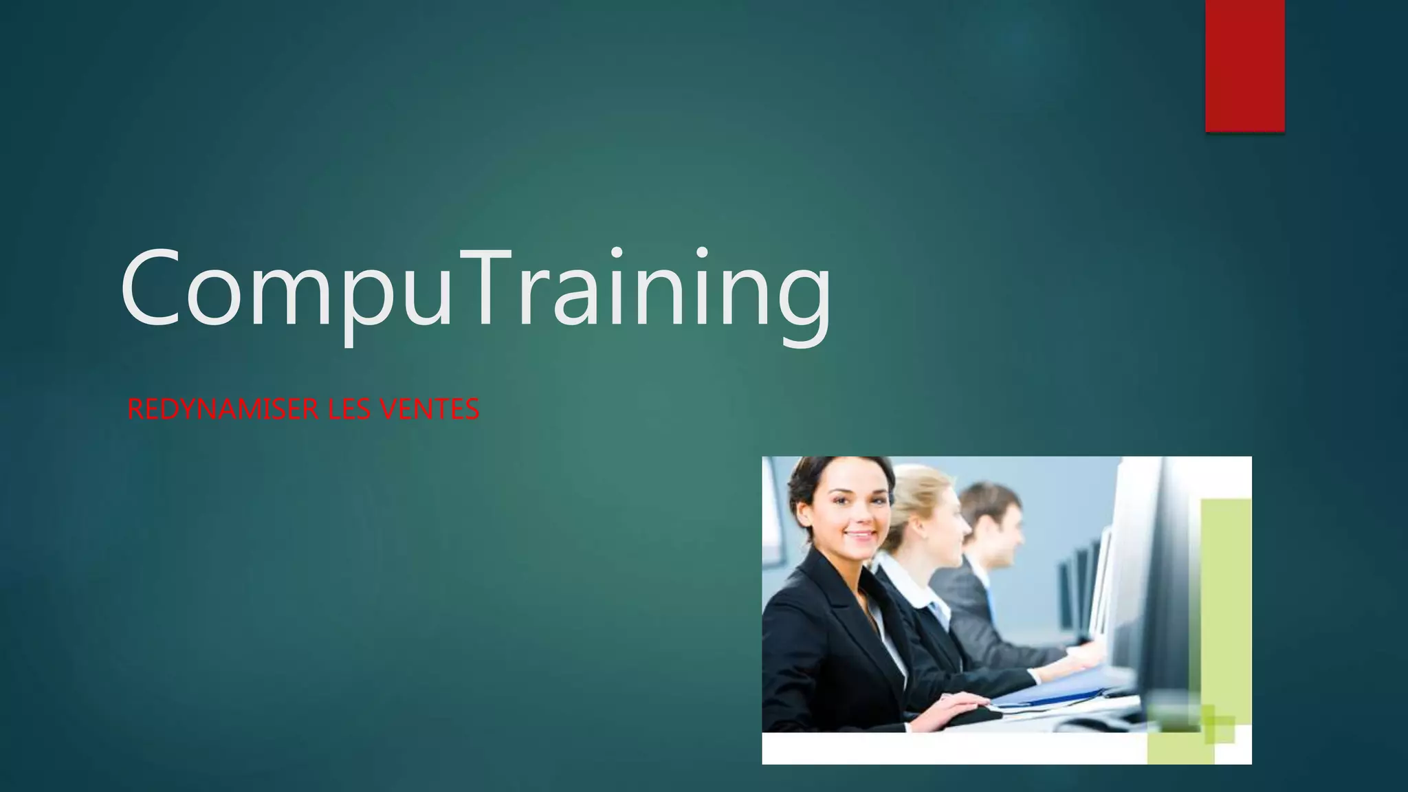 Computraining fait face à une forte baisse des ventes de formations et propose des solutions novatrices pour y remédier, telles qu'un service de vidéo en ligne accessible sur divers appareils. Les stagiaires reçoivent une carte de visite avec un QR code qui les dirige vers des vidéos récapitulatives des notions acquises. Avec le service 'computraining replay', ils peuvent revoir à tout moment les contenus des formations.
