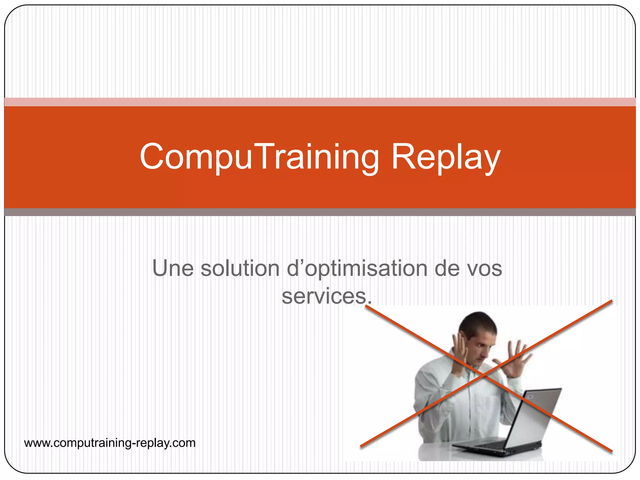 Computraining Replay propose une solution d'optimisation des services par le biais de flash codes, permettant un accès gratuit à des leçons en ligne pour aider les clients à retenir les techniques apprises. Cela répond à la problématique de l'oubli des clients en leur offrant une aide simple et mobile, accessible pendant trois mois sur divers appareils. Le flash code, technologie clé de la solution, permet de lier le physique au numérique de manière efficace.