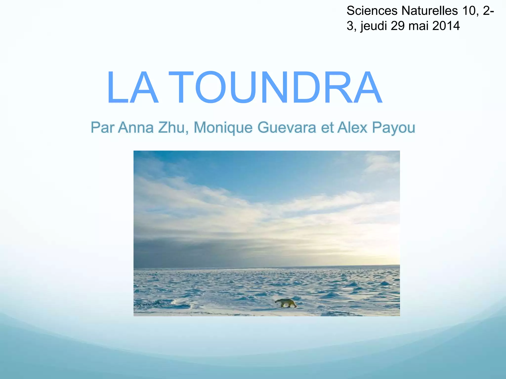 Le document présente les caractéristiques de la toundra, y compris sa faune et sa flore, ainsi que les adaptations des plantes et des animaux qui y vivent. Il aborde également les impacts humains sur cet écosystème fragile et l'importance de la protection des espèces et de leurs habitats. Enfin, il souligne la nécessité d'une sensibilisation à la conservation et aux effets des changements climatiques sur la toundra.