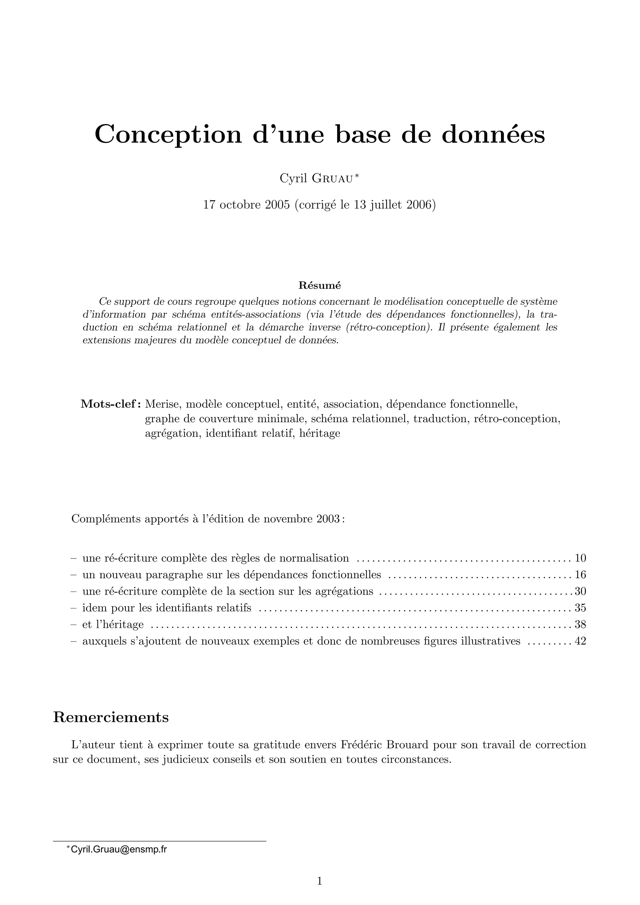 Ce document présente les concepts de modélisation conceptuelle des systèmes d'information à travers le schéma entités-associations, la traduction vers le schéma relationnel et la rétro-conception. Il inclut des mises à jour et des compléments sur les dépendances fonctionnelles et les techniques de normalisation. L'approche méthodologique repose sur la méthode Merise, développée pour concevoir des systèmes d'information de manière standardisée.