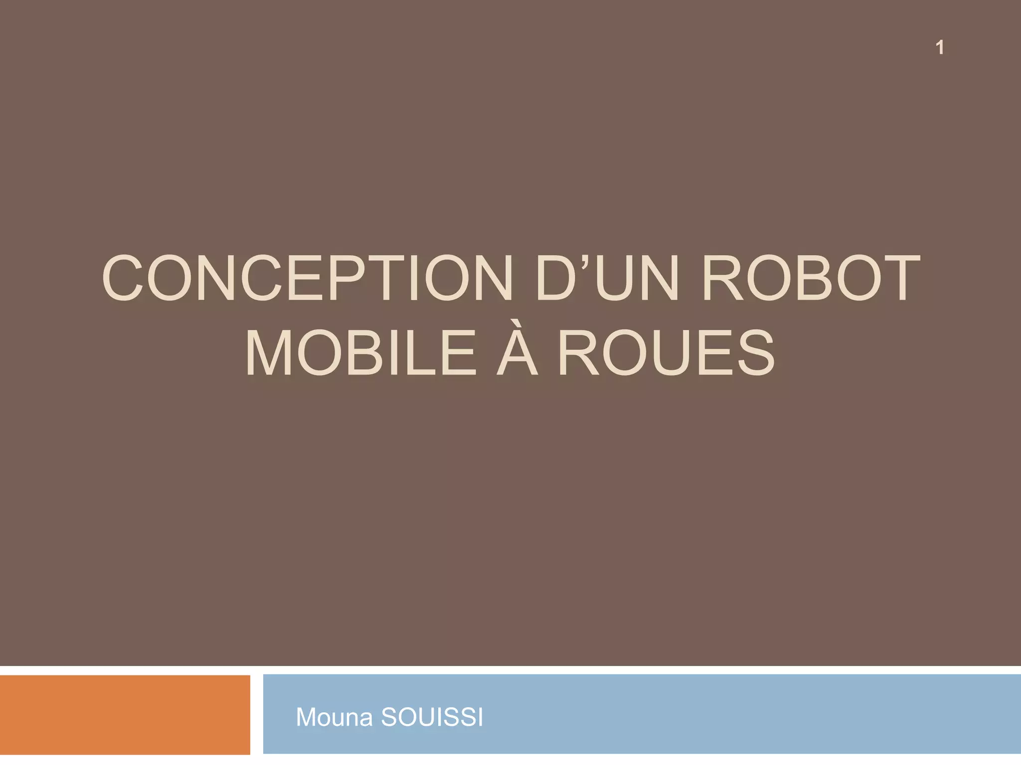 Le document décrit la conception d'un robot mobile à roues, en détaillant les aspects électroniques et mécaniques ainsi que l'algorithme de commande utilisé. Il présente les composants tels que le micro-contrôleur 16f877, le module de multiplexage et le circuit L298 pour la gestion des moteurs, ainsi que les algorithmes pour la détection des obstacles. En conclusion, le robot est conçu pour atteindre une position finale en évitant les obstacles grâce à des capteurs ultrasons.