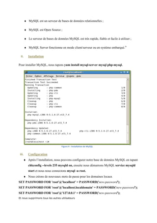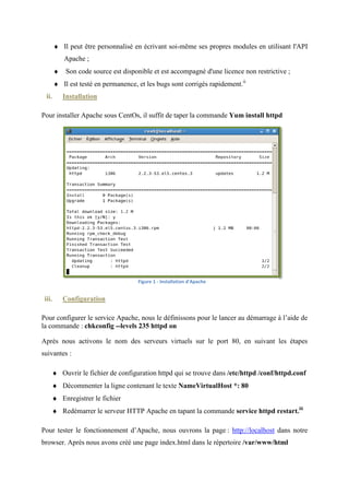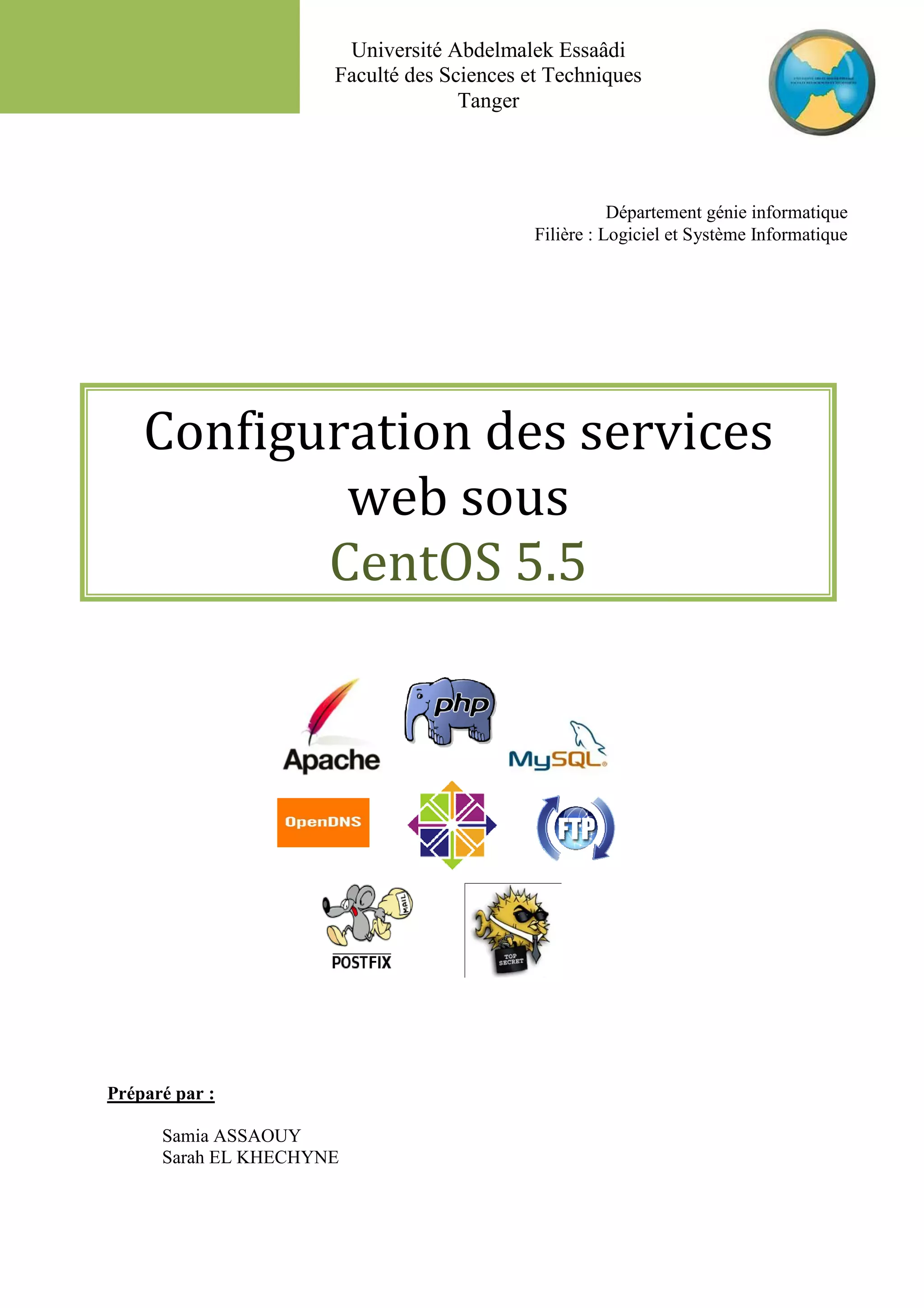 Le document présente une introduction à plusieurs services web et leur configuration sur la distribution Linux CentOS 5.5, tout en soulignant les avantages et inconvénients de CentOS. Il détaille des installations et configurations pour des outils tels qu'Apache, MySQL, PHP, phpMyAdmin, Webmin, FTP, et SSH. L'objectif est de simplifier l'administration des systèmes et offrir une interopérabilité entre différentes applications.