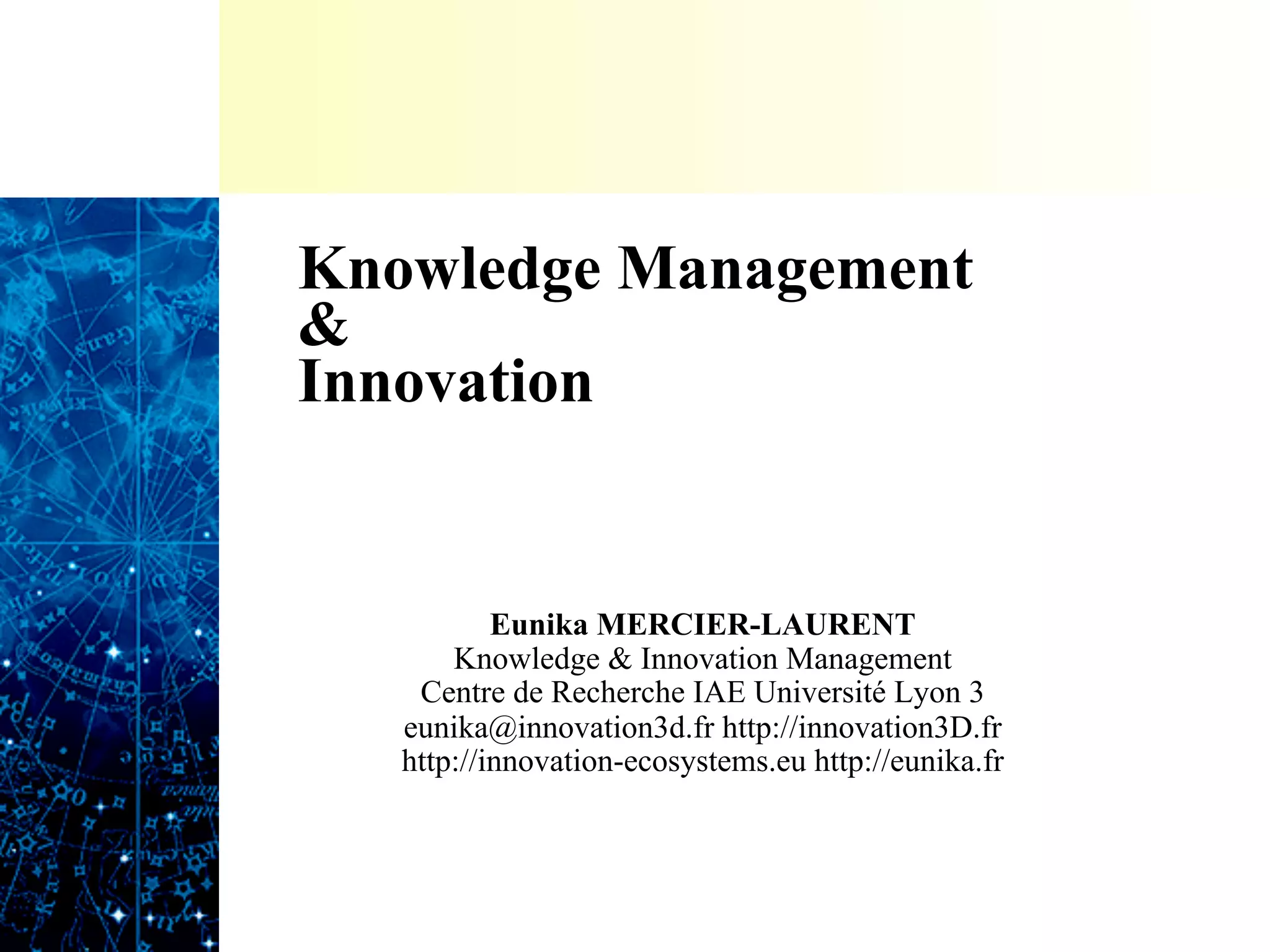 Le document explore le rôle crucial du management des connaissances dans le processus d'innovation, en détaillant des typologies d'innovation et en soulignant l'importance de la stratégie et de la collaboration. Il met en évidence l'importance de la créativité et des processus de transformation pour réussir l'innovation, ainsi que les divers outils et méthodes nécessaires pour faciliter la gestion des connaissances. L'impact de l'économie de la connaissance et les défis associés à l'innovation sont également discutés, tout en proposant des approches pratiques pour optimiser le flux de connaissances au sein des organisations.