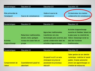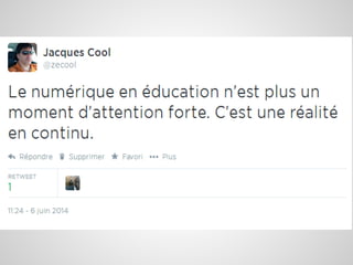 Le document traite de l'éducation dans un monde numérique en mutation, soulignant l'importance des compétences numériques et de la créativité des enseignants. Il explore le rôle de la technologie dans l'apprentissage, ainsi que les changements nécessaires dans les méthodes pédagogiques pour impliquer les élèves et favoriser leur passion pour l'école. L'objectif ultime est que chaque élève trouve de la joie et un sens dans son apprentissage.