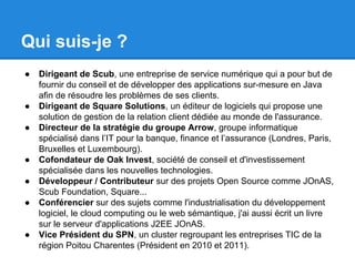 Stéphane Traumat, expert en big data, dirige diverses entreprises dans le secteur numérique et s'exprime sur l'importance de l'analyse des données pour la prise de décision. Le big data fait face à des défis tels que le volume, la variété et la vélocité, et il est crucial pour les entreprises d'exploiter ces données afin de personnaliser l'expérience client. Le document aborde également des concepts tels que le web sémantique, les nouveaux métiers comme celui de data scientist, et présente la solution Square Predict pour l'assurance, tout en soulignant les dangers d'une telle exploitation des données.