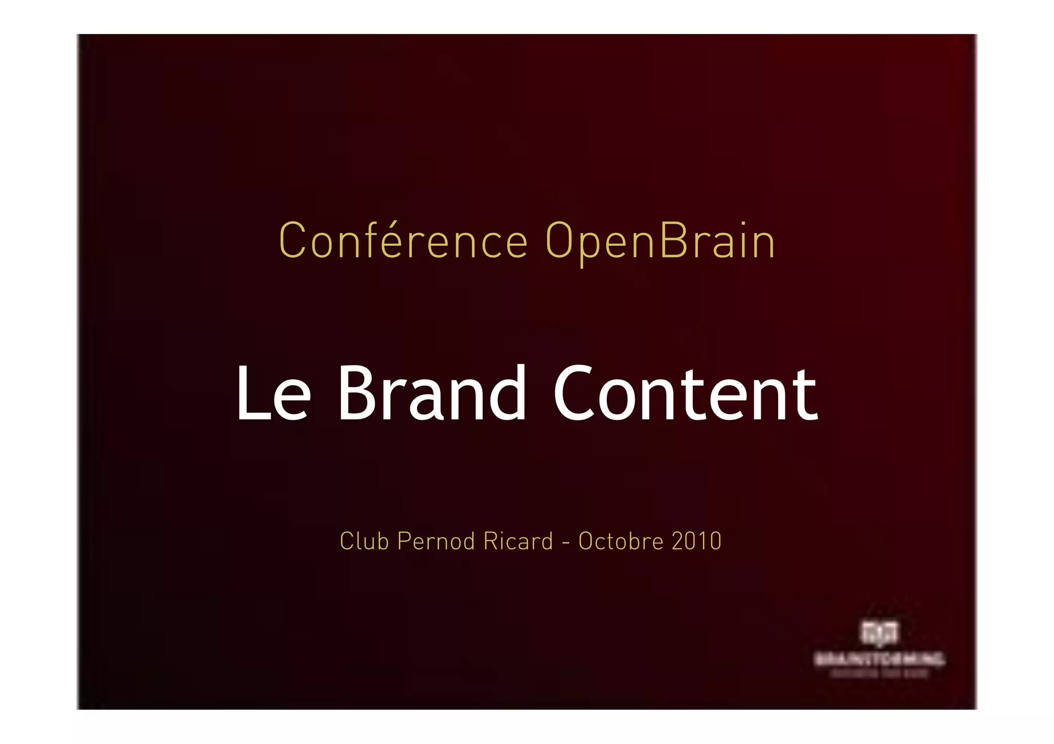 Le document discute l'évolution du brand content et son rôle fondamental dans la communication entre les marques et les consommateurs dans un contexte médiatique en constante mutation. Il souligne l'importance de créer des expériences significatives et des conversations authentiques plutôt que de se contenter de la publicité traditionnelle. Enfin, il insiste sur la nécessité de co-créer du contenu avec le public pour renforcer l'engagement et la valeur de la marque.