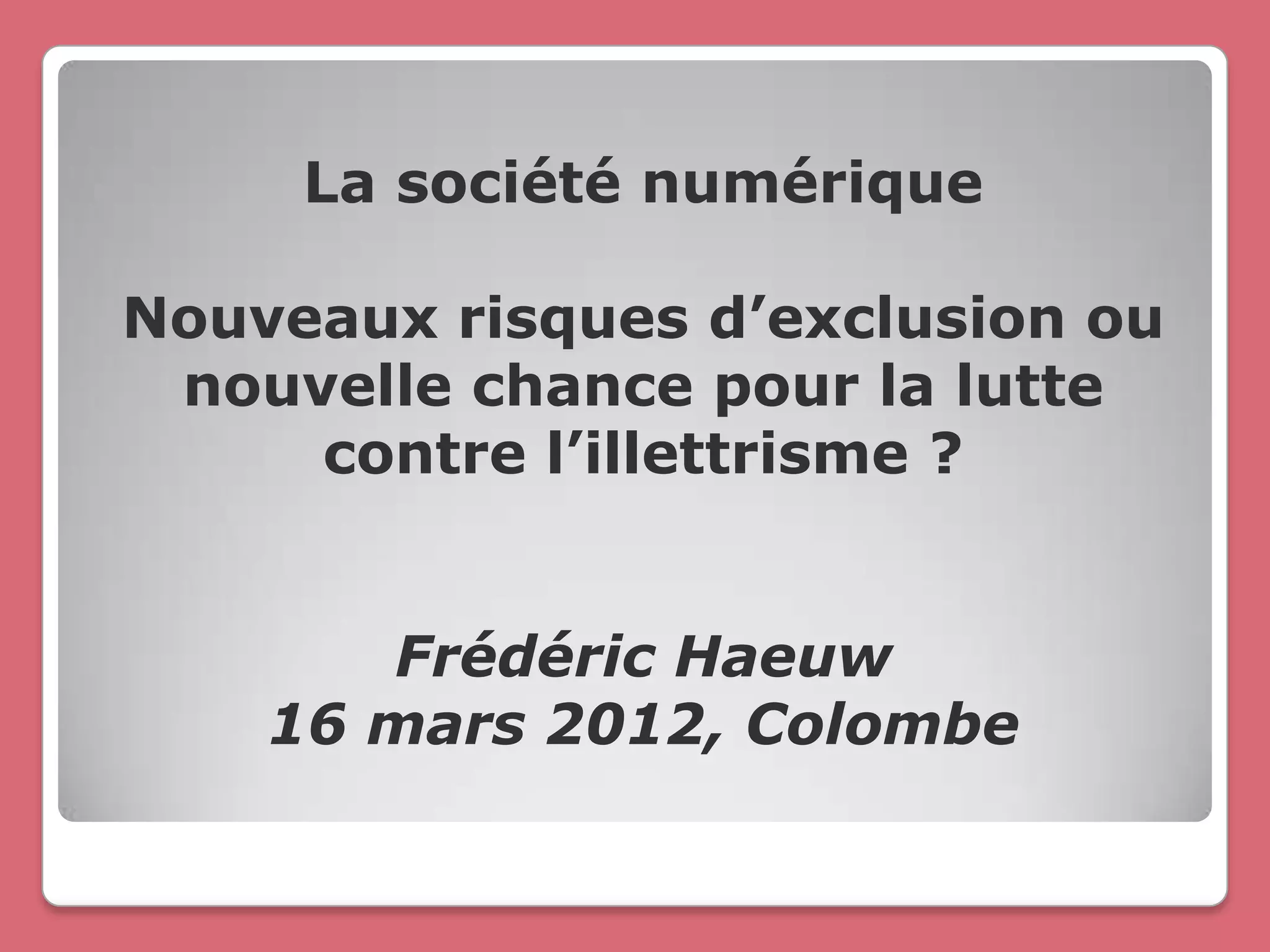 Le document aborde la problématique de l'illettrisme en France et son interaction avec la société numérique, soulignant que 3,1 millions de personnes sont touchées par ce phénomène. Il discute des compétences numériques nécessaires dans le contexte du Web 2.0, tout en mettant en avant les opportunités et les défis liés à l'utilisation des technologies de l'information et de la communication pour lutter contre l'illettrisme. Enfin, le texte propose des pistes pour améliorer l'accès et l'usage des TIC afin de favoriser la formation et l'insertion des personnes en situation d'illettrisme.