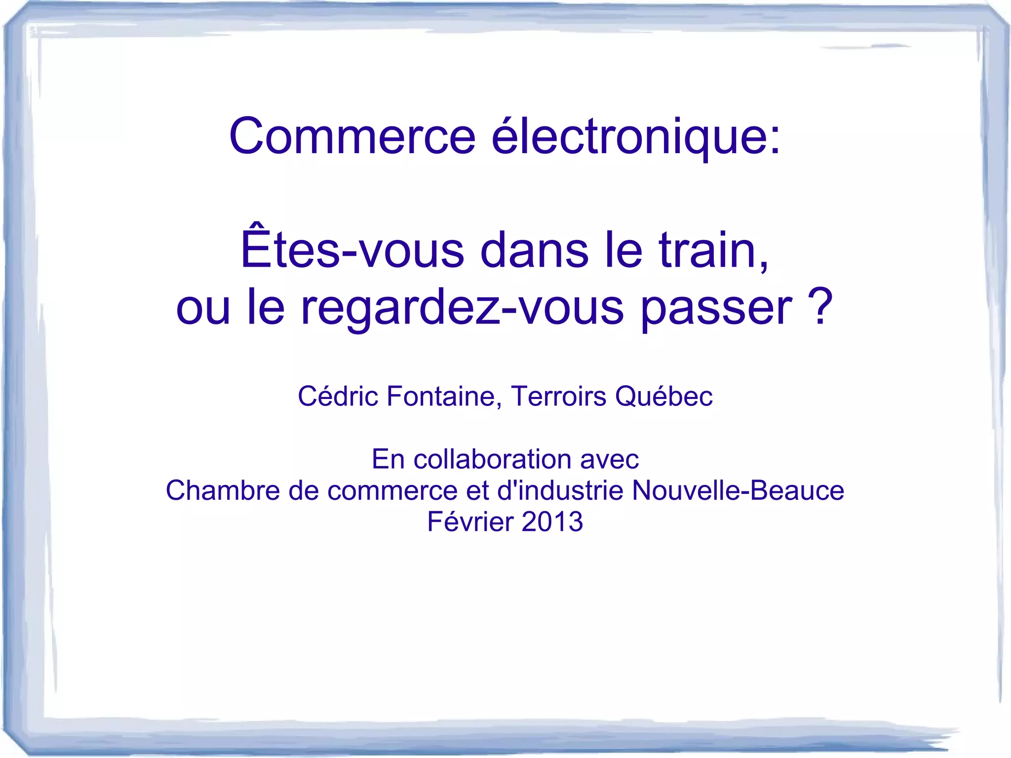 Le document aborde les divers aspects du commerce électronique, notamment les choix de logiciels, le budget d'investissement nécessaire et les questions à considérer avant de lancer un site de e-commerce. Il souligne l'importance de la gestion de projet, du service clientèle, de la logistique et de l'acquisition de clients, tout en traitant des problématiques de paiement et de sécurité. Enfin, il recommande d'analyser et d'optimiser les performances des sites pour maximiser la conversion et les ventes.