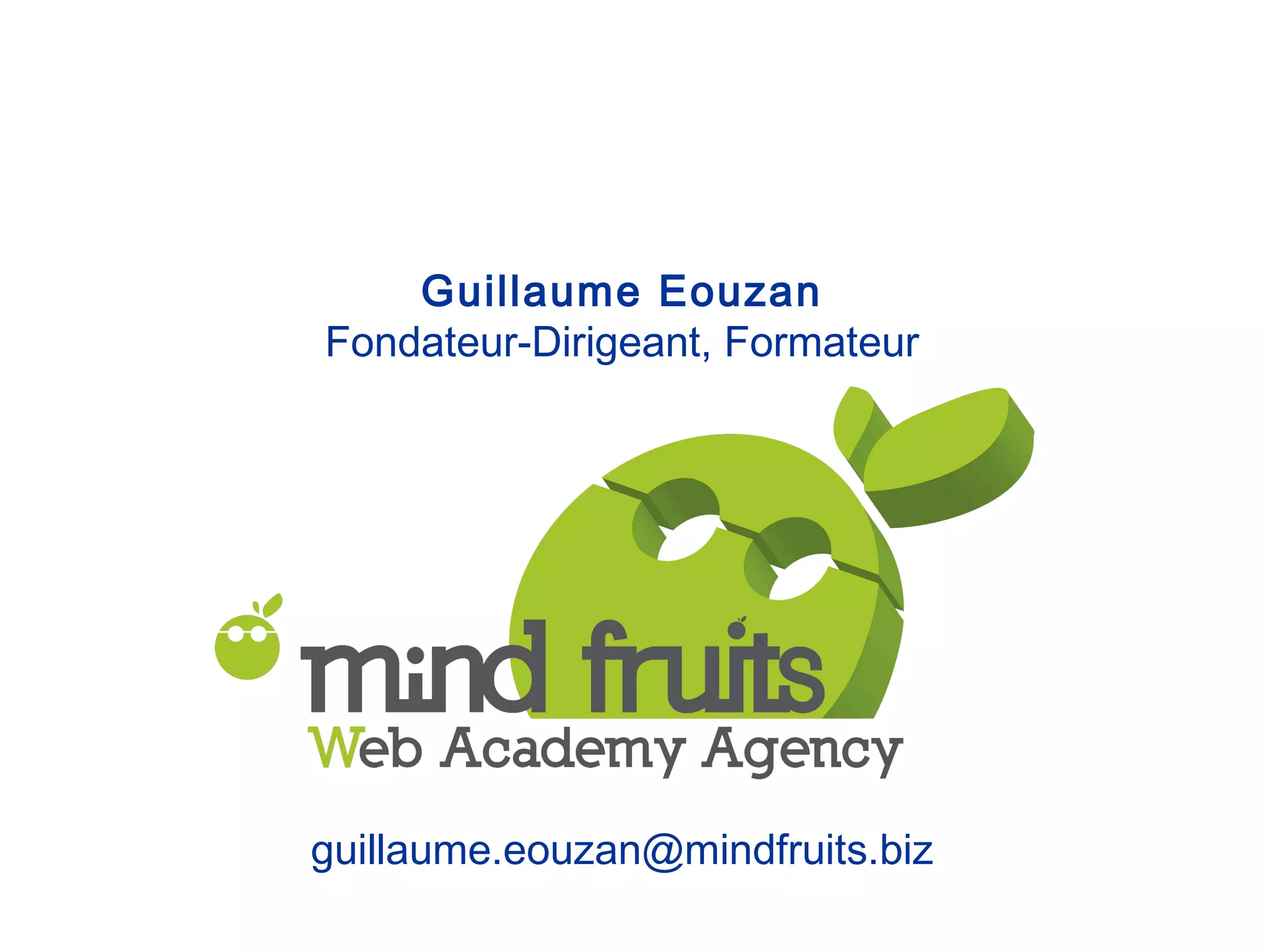 Guillaume Eouzan, fondateur de Mind Fruits Web Academy, partage son expertise sur le webmarketing et le référencement, notamment à travers son livre et son parcours professionnel. Il souligne l'importance d'une approche multicanale et d'une visibilité optimisée sur le web pour contrer les mises à jour fréquentes des algorithmes de Google. Les conseils incluent la nécessité de créer un design responsive, d'améliorer la vitesse de chargement des pages, et de privilégier le contenu de qualité et le linking externe pour renforcer la notoriété en ligne.