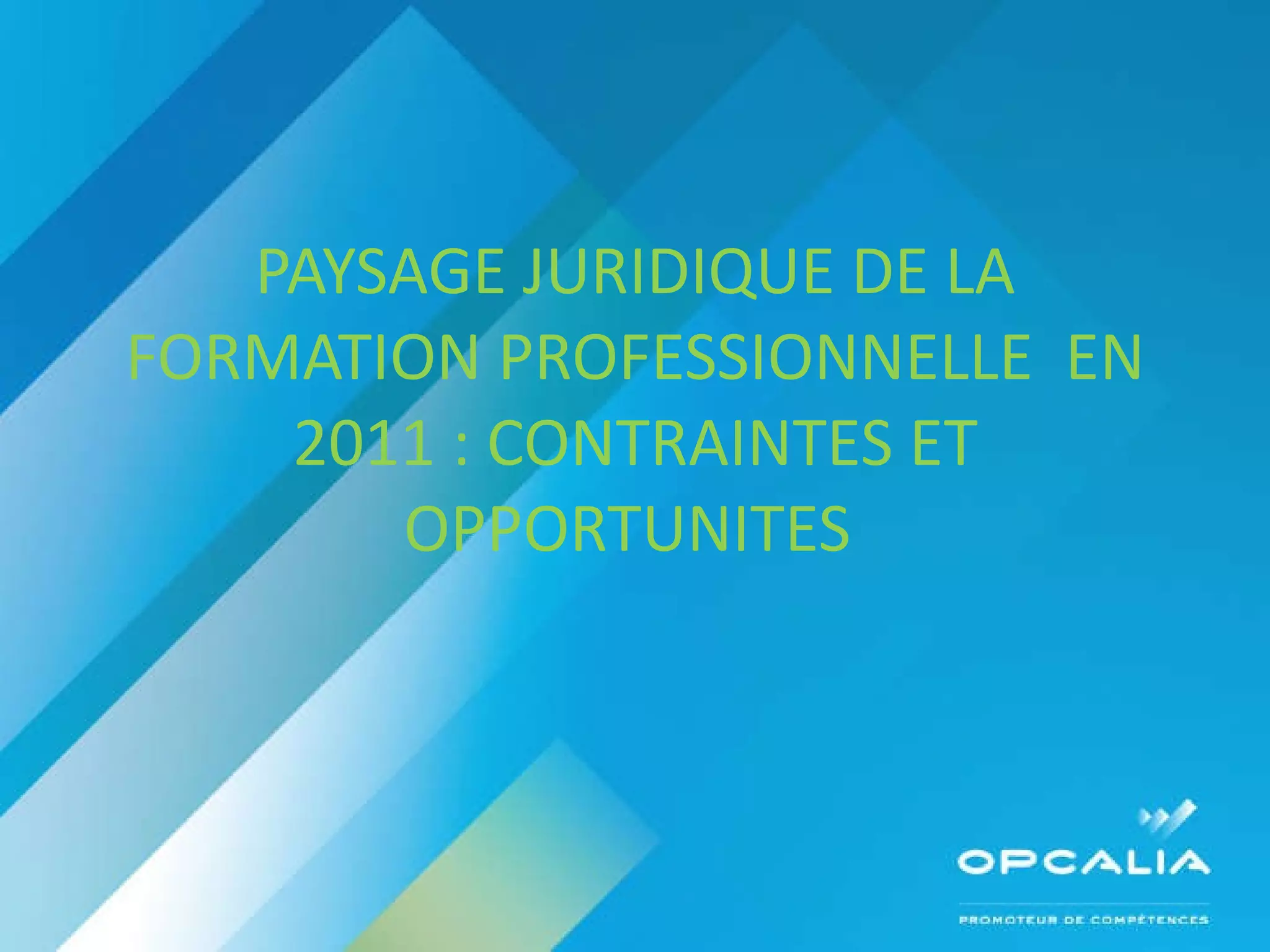 Le paysage juridique de la formation professionnelle en 2011 est marqué par des contraintes économiques et un chômage élevé, mais aussi par des opportunités de financement pour les entreprises via des dispositifs tels que les contrats de professionnalisation. Des mesures ont été mises en place pour favoriser l'alternance et l'employabilité des jeunes et des seniors, ainsi que pour sécuriser les parcours professionnels tout au long de la vie. Le contrat de sécurisation professionnelle, créé en réponse aux licenciements économiques, vise à favoriser le reclassement des salariés avec un suivi adapté et un accompagnement personnalisé.