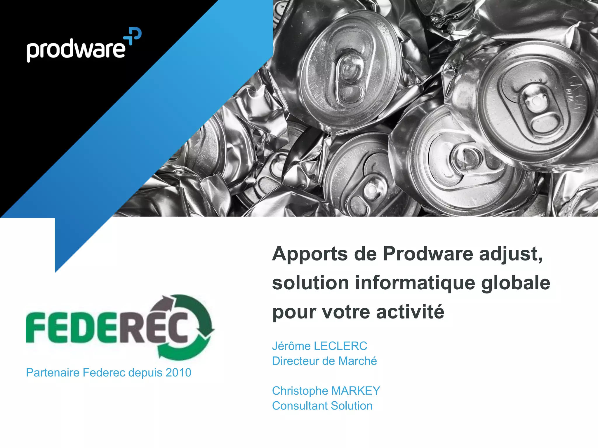 Prodware Adjust est une solution informatique globale dédiée à la gestion des déchets et du recyclage, intégrant des solutions ERP, CRM et de gestion opérationnelle. Elle propose des services variés allant de l'intégration et l'hébergement à des solutions de financement personnalisées, tout en offrant des méthodologies adaptées à chaque entreprise. Destinée aux professionnels du secteur, Prodware Adjust se fixe comme objectif d'améliorer les performances des entreprises grâce à des solutions innovantes et à forte valeur ajoutée.