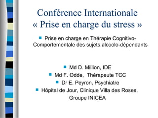 La conférence aborde la prise en charge des sujets alcoolo-dépendants souffrant de troubles anxieux en utilisant la thérapie cognitivo-comportementale. Elle souligne les liens entre l'anxiété et l'alcoolo-dépendance, et présente des stratégies adaptatives selon les stades de motivation du patient. La thérapie individuelle et de groupe est évoquée, ainsi que l'importance de traiter l'ambivalence entre anxiété et consommation d'alcool.