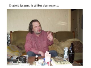 Le document aborde les avantages du célibat, soulignant l'indépendance et la gestion personnelle de l'espace. Il offre des conseils pratiques sur l'organisation de la vie quotidienne, la méditation et l'harmonie avec la nature. Enfin, il conclut en affirmant que ceux qui ne parviennent pas à s'adapter ne peuvent être aidés.