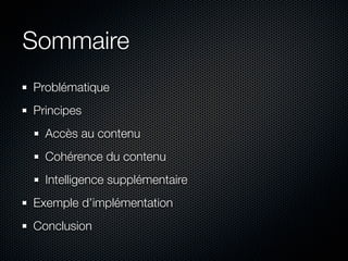 Le document traite des réseaux de distribution de contenu (CDN) en abordant leur définition, l'évolution des problématiques liées à la consommation de contenu, et les systèmes de routage pour garantir la cohérence. Il présente également des exemples d'implémentation, notamment celui d'Akamai, avec des données sur la répartition et l'optimisation des serveurs. En conclusion, il souligne l'importance de minimiser les coûts de distribution et d'utiliser des algorithmes de décision adaptés.