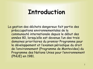 La Convention de Bâle, adoptée en 1989, vise à encadrer les mouvements transfrontaliers des déchets dangereux pour protéger la santé publique et l'environnement. Malgré les efforts de régulation, le problème des exportations illégales vers les pays en développement persiste, car certains acteurs contournent les règles en requalifiant les déchets en produits recyclables. Les mécanismes de contrôle et de sanctions demeurent insuffisants, rendant difficile la lutte contre ces pratiques.
