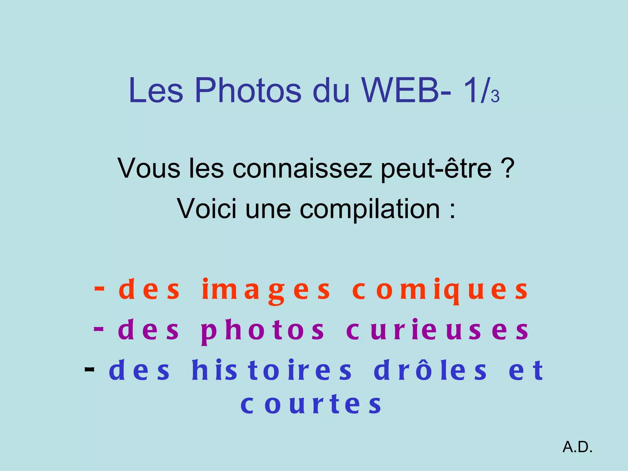 Le document présente une compilation de photos et d'images, allant de visuels comiques à des histoires drôles. Il évoque aussi des souvenirs de voyages à Paris et divers thèmes liés aux expériences de vie. Cette collection est un hommage à la vie quotidienne, illustrée de manière humoristique et artistique.