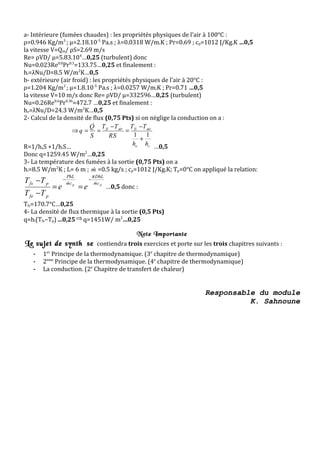 Le document traite de la thermodynamique et du transfert de chaleur à travers plusieurs exercices, incluant des calculs de températures, flux de chaleur et propriétés physiques de l'air. Il aborde également l'utilisation de matériaux d'isolation pour améliorer l'efficacité thermique. Enfin, il souligne l'importance de certains principes de thermodynamique dans l'analyse des systèmes thermiques.