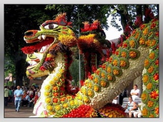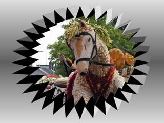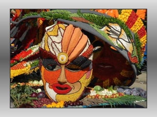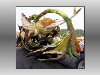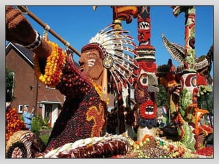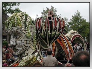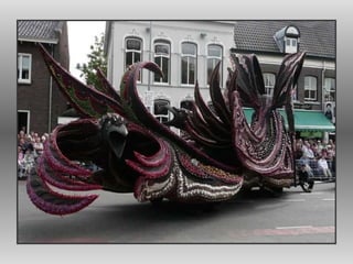 Le corso fleuri de Tiel en Belgique présente des véhicules décorés avec des fruits, des légumes, des noix et des graines. Cet événement met en avant la créativité et l'art floral. La présentation est enrichie par un diaporama de Senyanzobe.