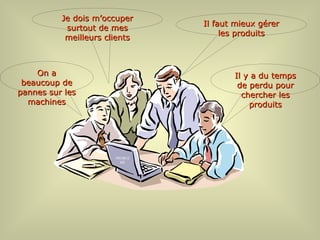 Le document traite de l'utilisation de la méthode de Pareto 80/20 pour améliorer la gestion des stocks et des produits d'une entreprise. Il propose de classer les produits par importance afin de réduire les pertes de temps et d'optimiser les achats. Enfin, il comprend des tableaux et des calculs pour établir une stratégie efficace de réapprovisionnement.