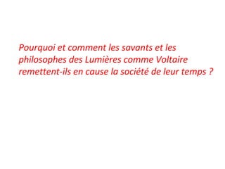 Le document présente une étude de cas sur Voltaire, philosophe des Lumières, et aborde sa biographie, ses critiques de la société de son temps, ainsi que son éducation jésuite. Il évoque des événements marquants de sa vie, notamment une altercation avec le chevalier de Rohan et ses positions sur l'absolutisme et l'intolérance religieuse. Enfin, il discute de l'impact des idées des Lumières sur l'opinion publique et l'éducation.