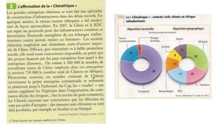 Le document examine les défis de développement en Afrique, en se concentrant sur le Sahara, qui possède d'importantes ressources mais est également le théâtre de conflits et de tensions politiques. Il met en lumière l'insécurité alimentaire, les obstacles à la mondialisation, ainsi que les perspectives de développement malgré des défis significatifs tels que la croissance démographique et les enjeux environnementaux. Enfin, il souligne l'importance géopolitique et sécuritaire du Sahara pour différents acteurs.
