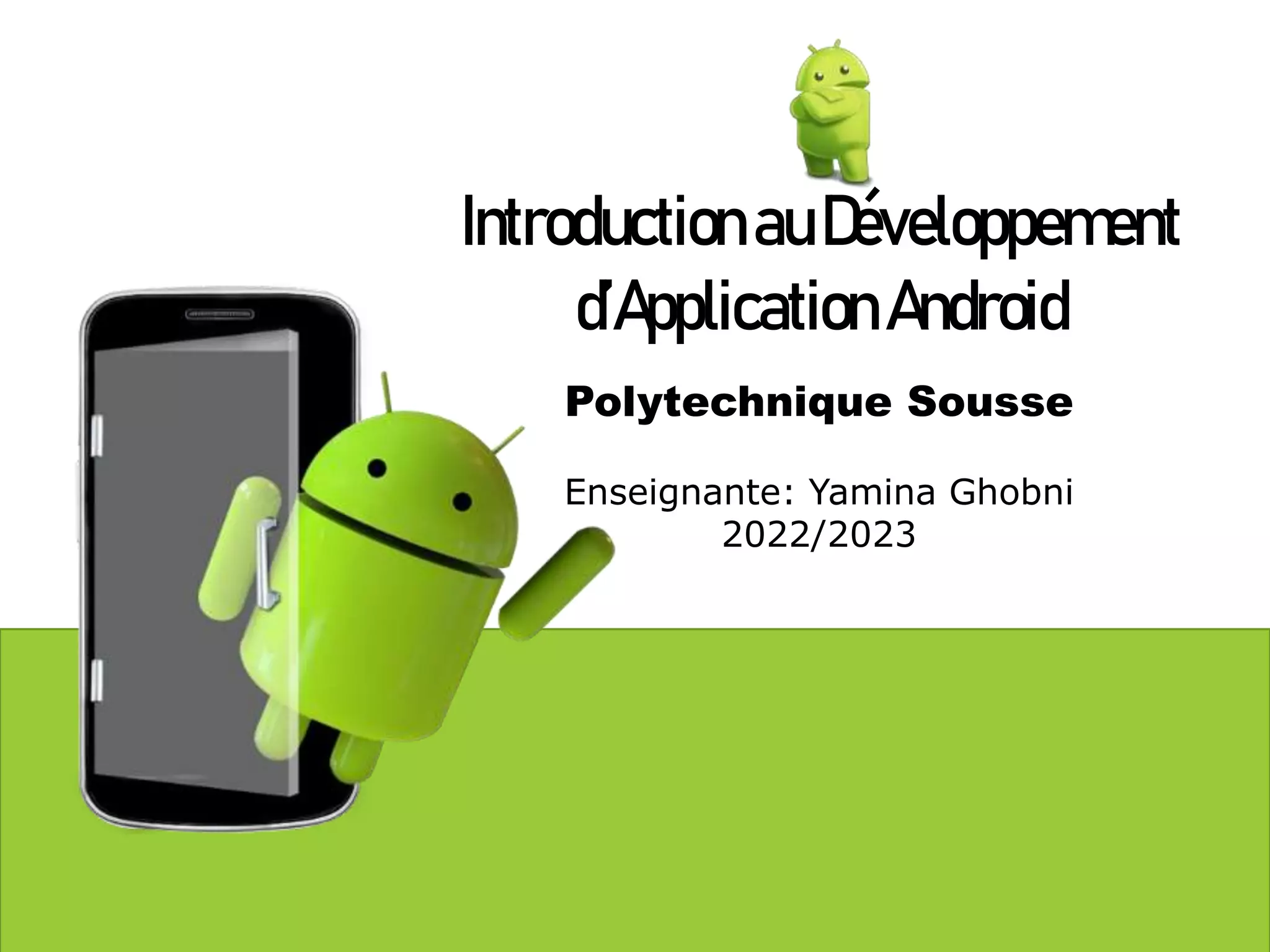 Ce document présente un cours sur le développement d'applications Android, abordant l'architecture du système, les composants essentiels d'une application, ainsi que l'utilisation de l'Android SDK. Il inclut des informations sur les langages de programmation compatibles, les types d'intentions, et les ressources nécessaires pour le développement. Le cours couvre aussi les concepts fondamentaux comme les cycles de vie des activités, les contextes, et la structure des fichiers de configuration manifest.