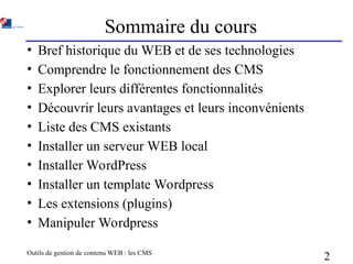• Faciles à maintenir et à faire évoluer : les CMS répercutent les évolutions du WEB (usage, technologie,