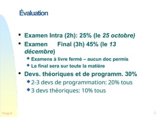 ExamenIntra (2h): 25% (le 25 octobre)