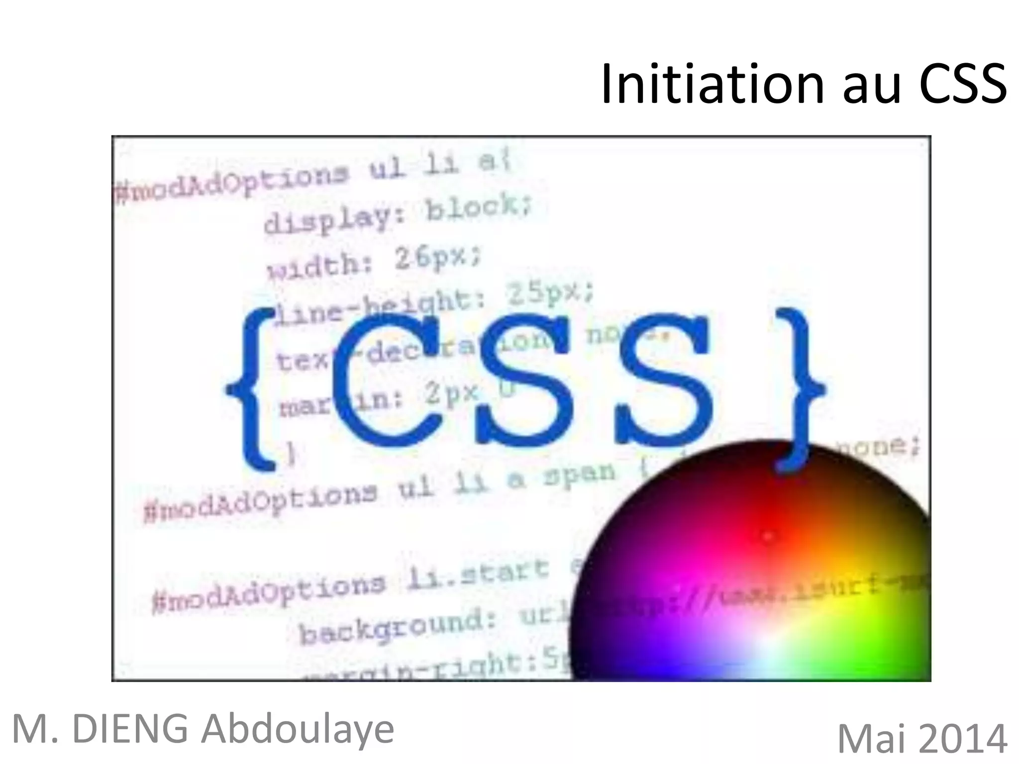 Ce document est une initiation au CSS (Cascading Stylesheets) visant à enseigner les principes de mise en forme des sites web. Il aborde divers aspects tels que la syntaxe, les sélecteurs, l'insertion de styles et des propriétés variées comme les marges, bordures, et le positionnement. Le but est d'aider à séparer la structure et la présentation du contenu pour une gestion plus efficace des sites web.