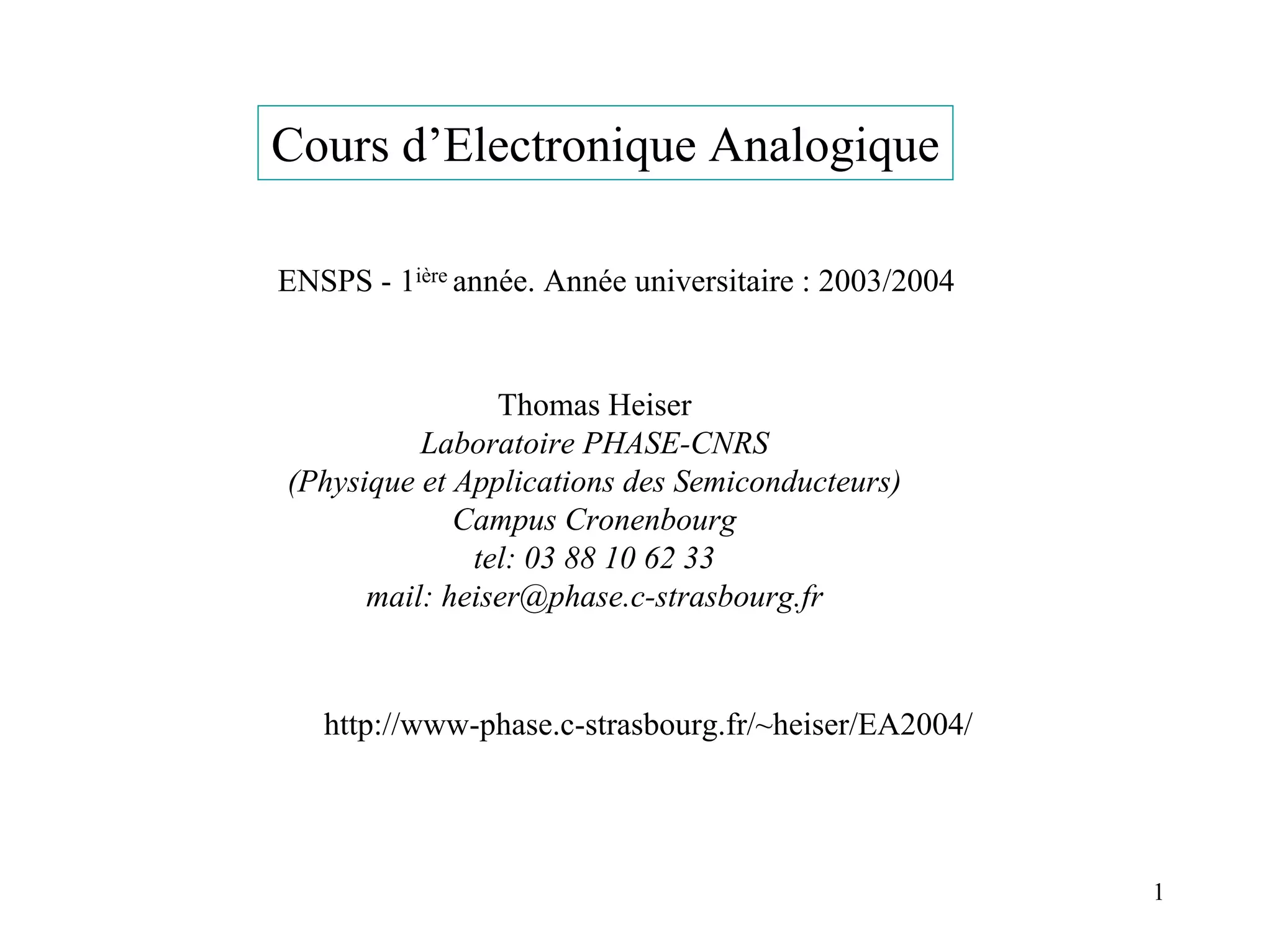 Ce document présente le cours d'électronique analogique pour les étudiants de première année, abordant des thèmes comme les diodes, les transistors, et le théorème de Thévenin. Il inclut des concepts fondamentaux tels que les sources idéales et réelles, ainsi que des approches pour modéliser le comportement des diodes dans divers circuits. La bibliographie propose des références pour approfondir les connaissances en électronique.
