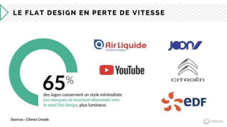Le document aborde la conception de logos, mettant en avant leur définition, leurs qualités requises, et leur importance dans la communication d'une marque. Il souligne l'évolution historique des logos, ainsi que les tendances de design pour 2018, telles que le style 'flat 2.0'. Enfin, il propose une analyse des logos en termes de lisibilité, d'évocation des valeurs et de représentation graphique.