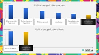 Le document traite de l'évolution du web, de la première génération (web 1.0) où l'information était unidirectionnelle, à la seconde (web 2.0) qui a favorisé l'interaction sociale, et enfin à la troisième génération (web 3.0) où les données utilisateur sont au centre de l'expérience. Il décrit également les différents outils d'accès au web : les sites web, les applications natives et les applications web progressives, en soulignant leurs caractéristiques, avantages et inconvénients. La progressive web app est présentée comme l'avenir des applications mobiles, combinant les avantages des sites web et des applications natives.