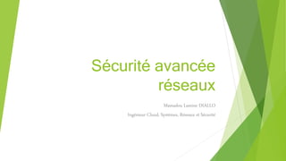 Le document aborde la sécurité avancée des réseaux, en détaillant les principaux concepts et mécanismes de protection tels que la gestion de la confidentialité, de l'intégrité et de la disponibilité des informations. Il couvre également des sujets tels que les pare-feux, les réseaux privés virtuels (VPN), le filtrage web, et la gestion des identités, tout en expliquant les différents types de sécurité réseau et leurs stratégies de mise en œuvre. En outre, il présente des outils et protocoles pour la sécurisation des différentes couches du réseau, ainsi que des technologies avancées comme Cisco NGIPS et AMP.