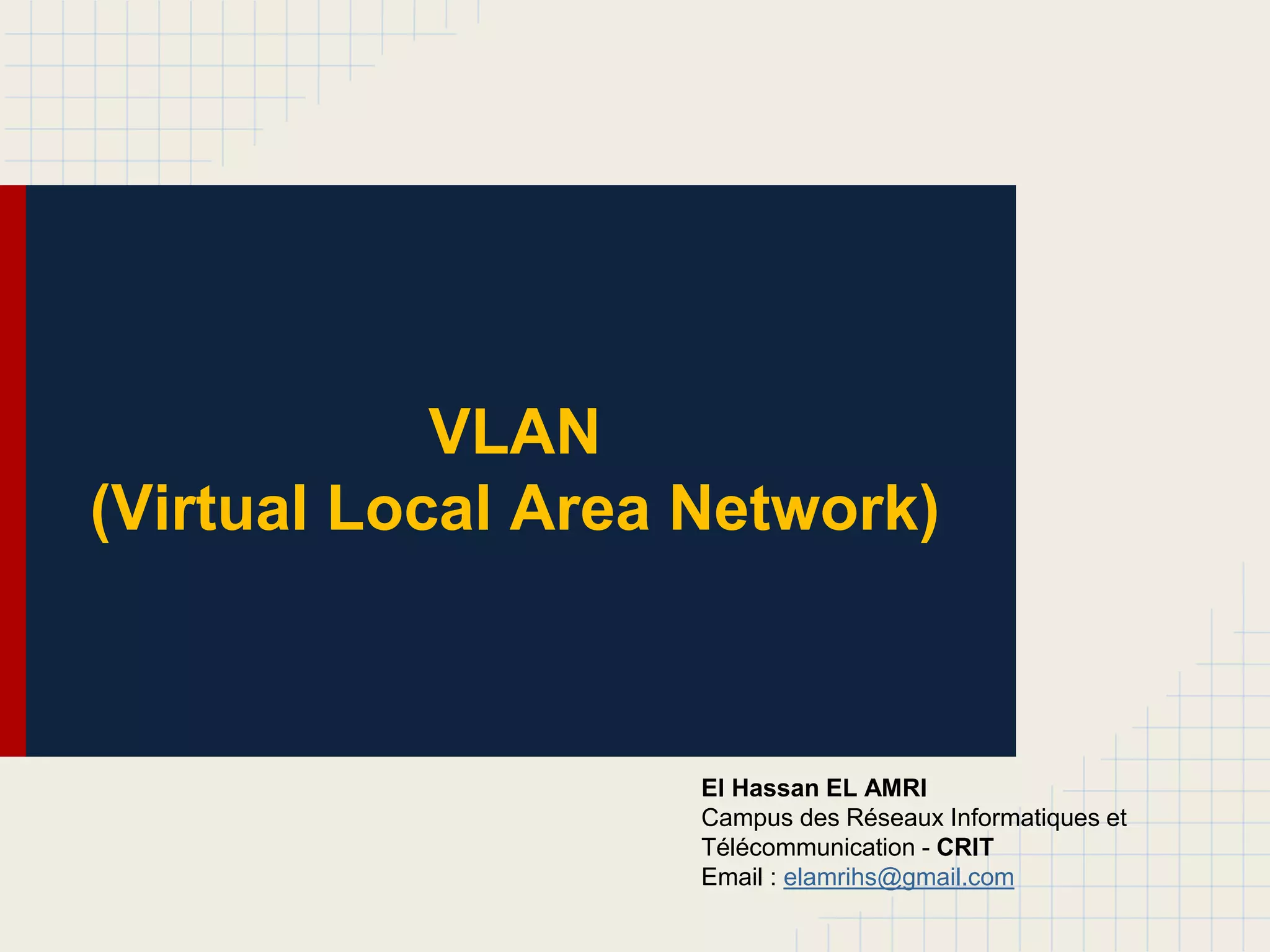 Le document traite des réseaux locaux virtuels (VLAN), détaillant leur définition, avantages et types, tels que les VLAN de données et de voix. Il évoque également l'importance des trunks de VLAN pour la communication entre commutateurs et aborde la sécurité liée aux VLAN, notamment les attaques potentielles comme l'usurpation d'identité et le double-tagging. Enfin, il présente des conseils sur la configuration et le dépannage des VLAN dans un environnement de réseau commuté.